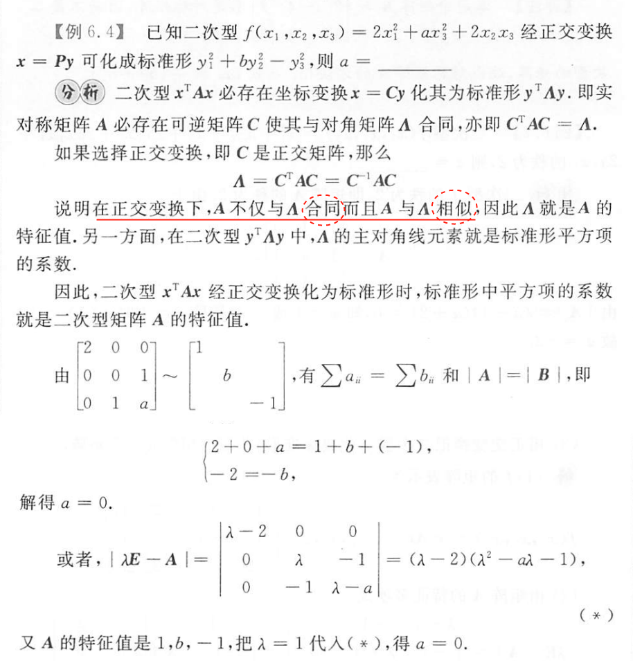 说明在正交变换下,A不仅与∧合同,而且A与∧相似