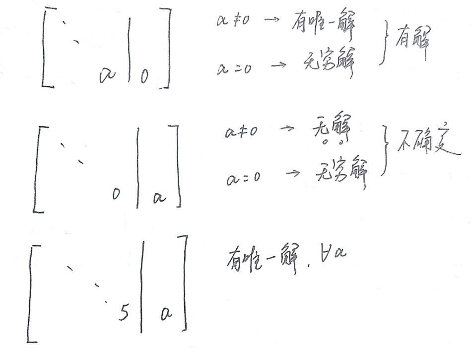 $\Leftrightarrow$ AX=0是否有非零解?(联系克拉默法则)