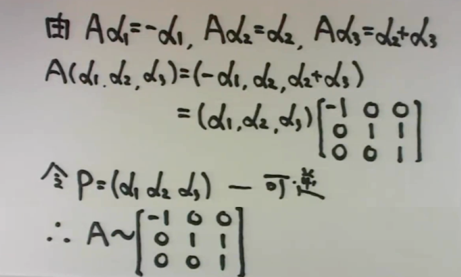 分析:$\alpha_1,\alpha_2,\alpha_3$无关,后面出现$A\alpha_1,A\alpha_2,A\alpha_3$想到相似