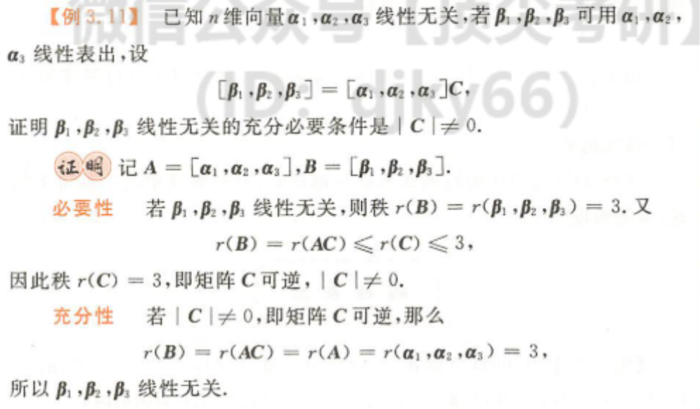 (3) 存在等式,找出k≠0,移项,做分母,得到线性表出(证能表出时)