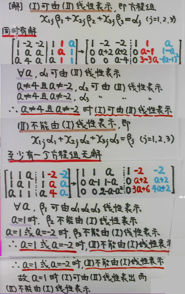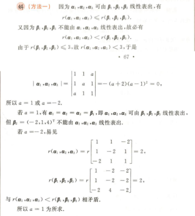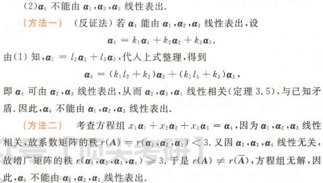 (1) 找出两个条件:向量组A无关,(A,β)相关(定理4)