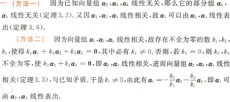 A线性相关 $\Leftrightarrow $ 存在$\alpha_i$ 可由A中剩余向量线性表出