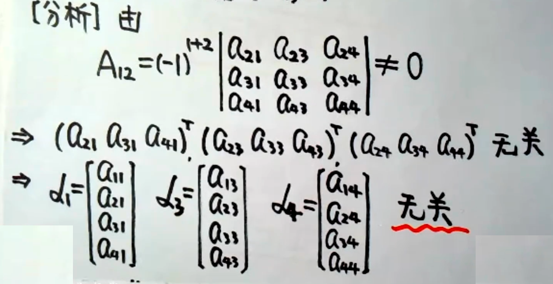 1. $A^{*}A=|A| E=0,\text{且}|A|=0$​​ ,有 $A^{ *} (a_1a_2a_3a_4)=0$​​,则向量$a_1,a_2,a_3,a_4$​​ 均为$A^{ *}x=0$​​​ 的解