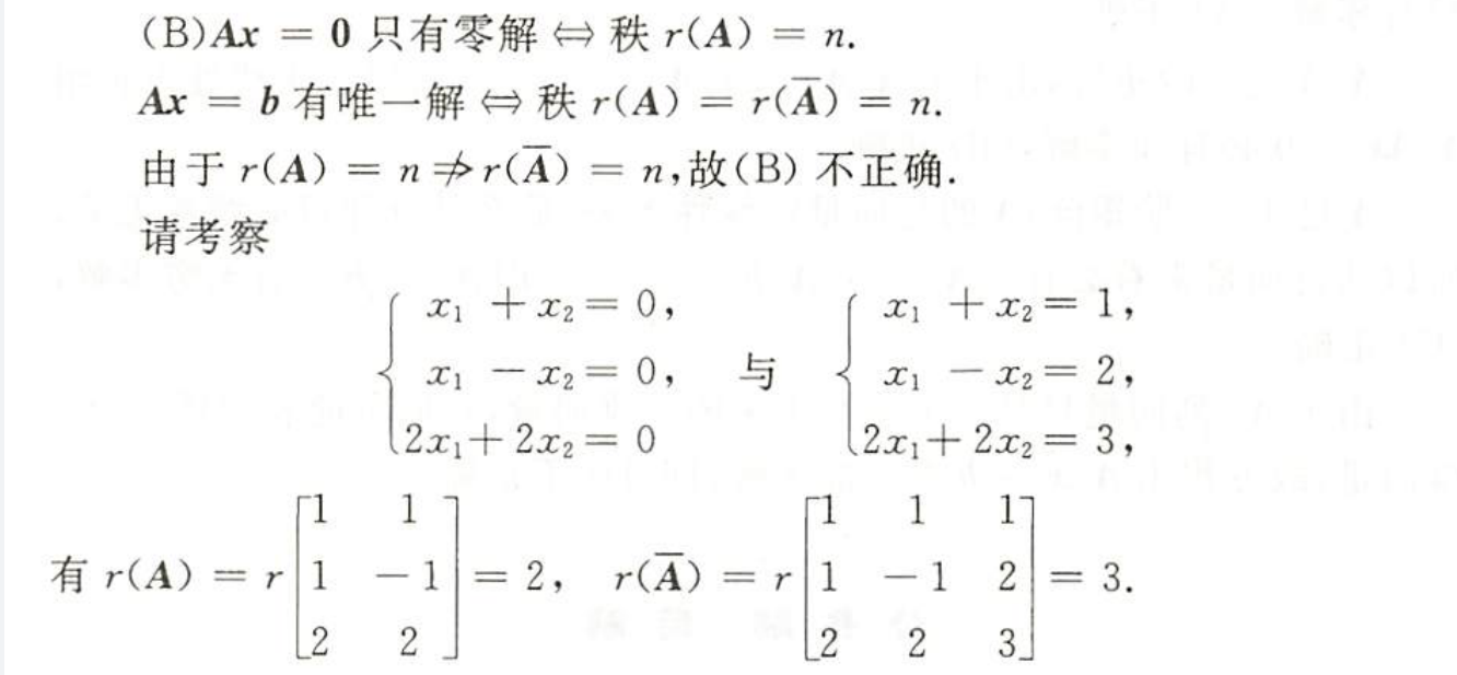 命题:若Ax=0只有零解,那么Ax=b有唯一解
