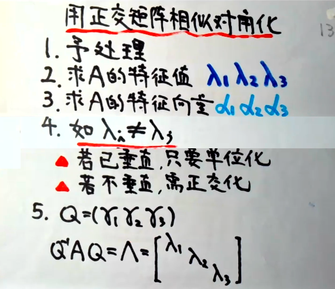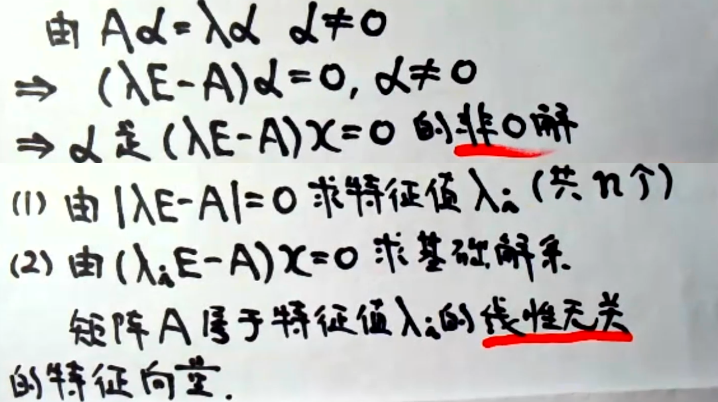 内积为0 ⇒ 齐次方程组 ⇒ 求得特征值