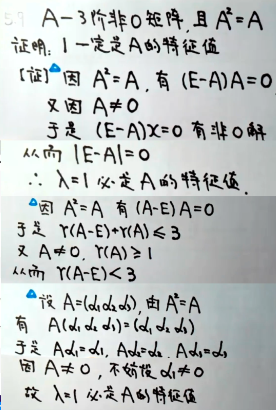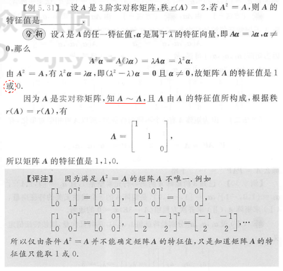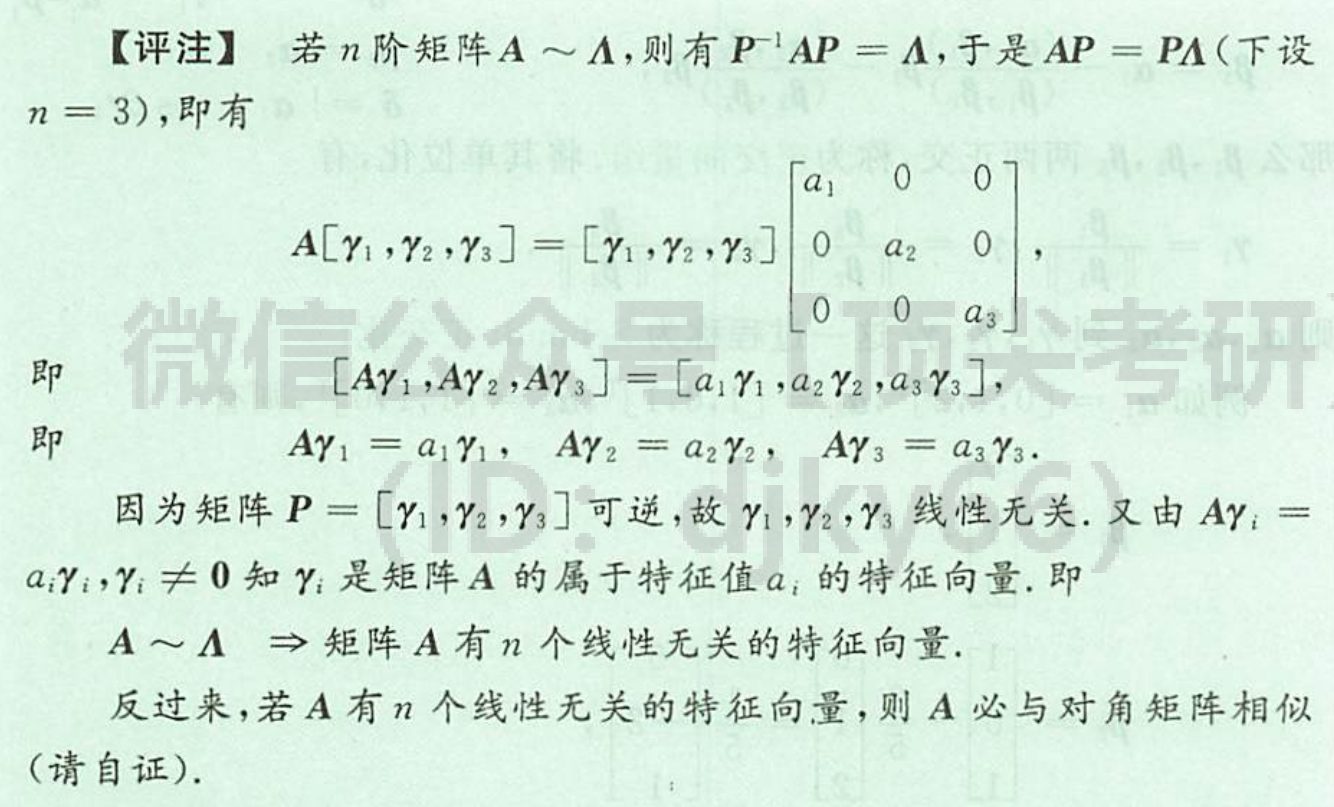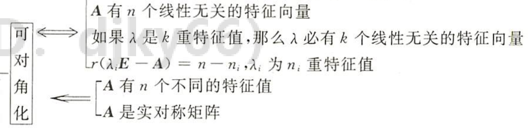 - A~∧ ⇔ 矩阵A有n个线性无关的特征向量。 (注意是充要条件)