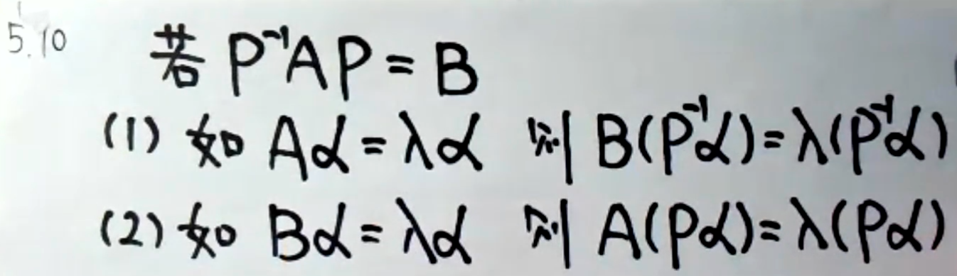 即 “两矩阵相似则具有相同特征值,特征向量也存在关系”